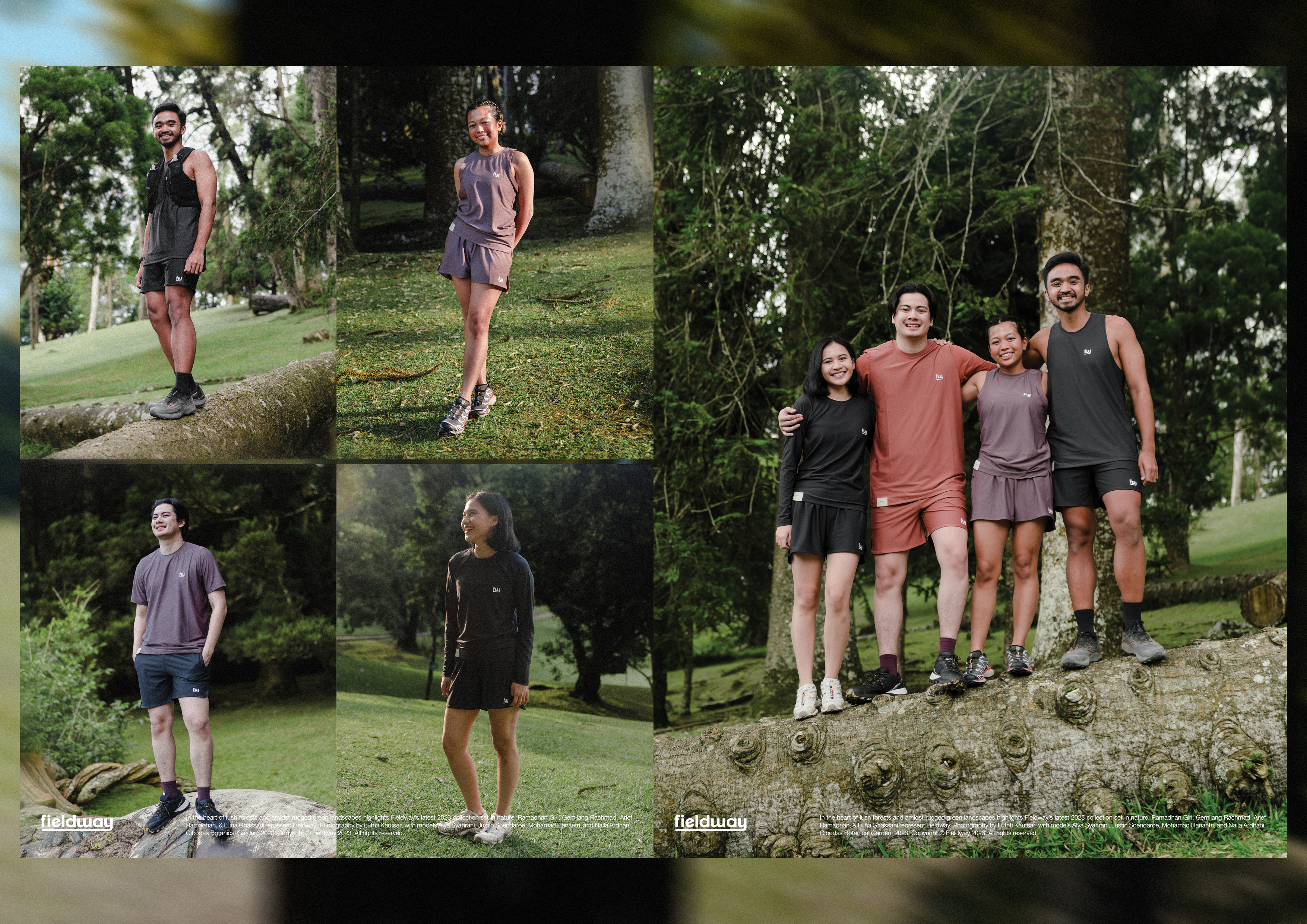 In the heart of lush forests and amidst rugged green landscapes highlights Fieldway’s latest 2023 collection set in nature. Ramadhan Giri, Gemilang Rachmad, Arief Ramadhan, & Luna Ghassani represent Fieldway. Photography by Luthfi Kautsar, with models Alya Syahrani, Justin Soendaroe, Mohamad Hanantri, and Naila Ardhani. Cibodas Botanical Garden, 2023.